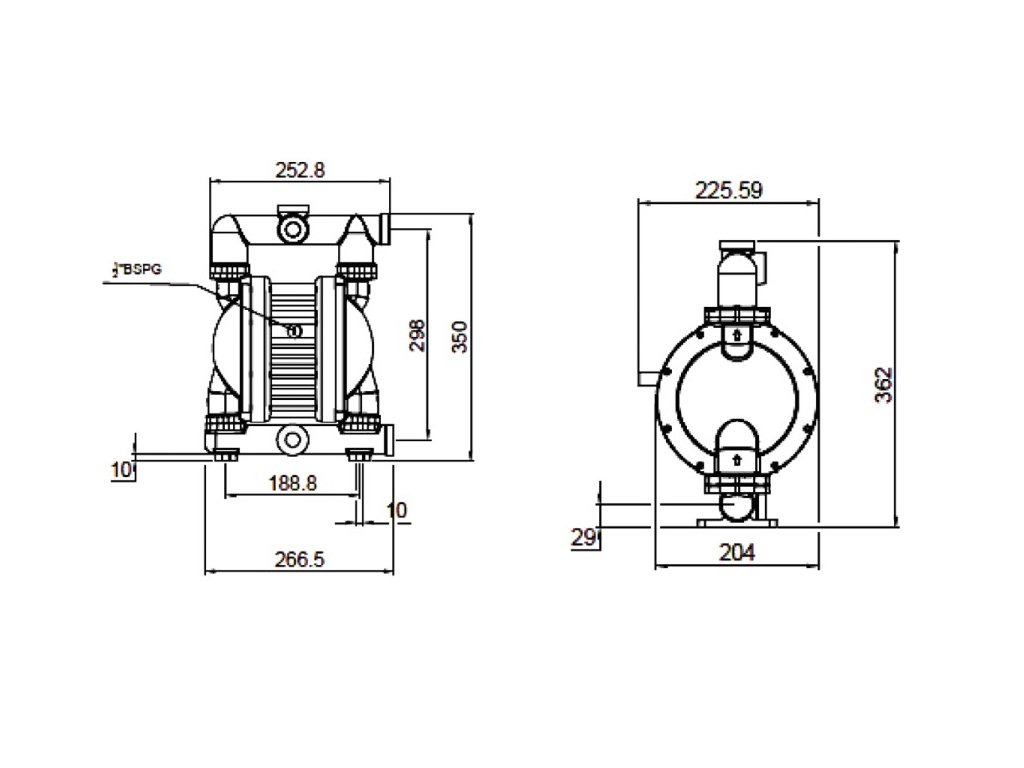 Vzduchomembránové čerpadlo značky RUBY v nerezovém (AISI316) provedení s membránami z materiálu PTFE (Teflon) je vhodné na různé média - na různé kyseliny a zásady s teplotou média do max. 95 °C. Maximální výkon: 168 l / min.